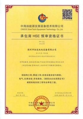 承包商HSE預(yù)審資格證書(2017年)